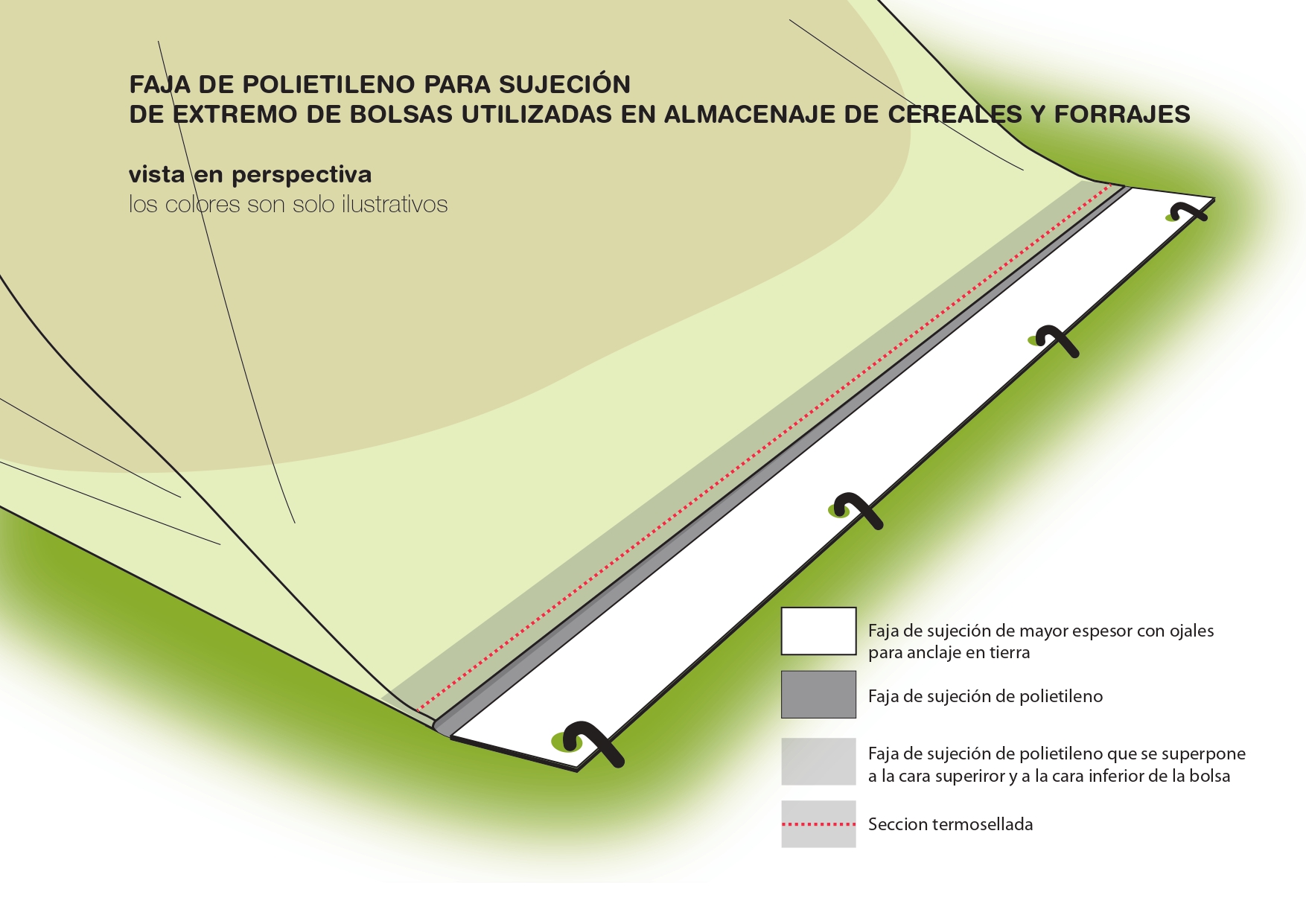 Propósito: La faja MANFED fue desarrollada para permitir el cierre hermético (termo sellado) y la sujeción al suelo de los extremos de silo bolsas destinados al almacenaje de granos o forrajes.